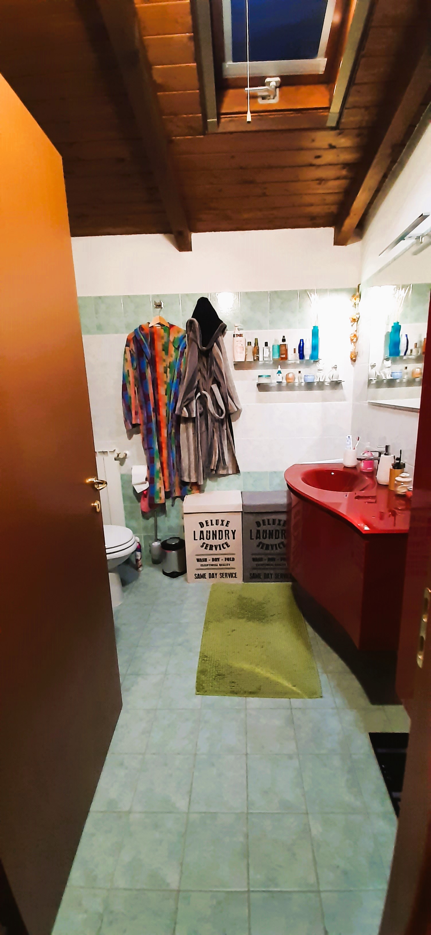 In prossimità della chiesa e della piazza principale del quartiere, vicino alle scuole, alla farmacia, bar e altri servizi di prima necessità, proponiamo in vendita al 2° piano, un appartamento su due livelli con tetto in legno a vista composto da: ingresso, luminoso soggiorno con camino, cucina abitabile con balcone e bagno con vasca.